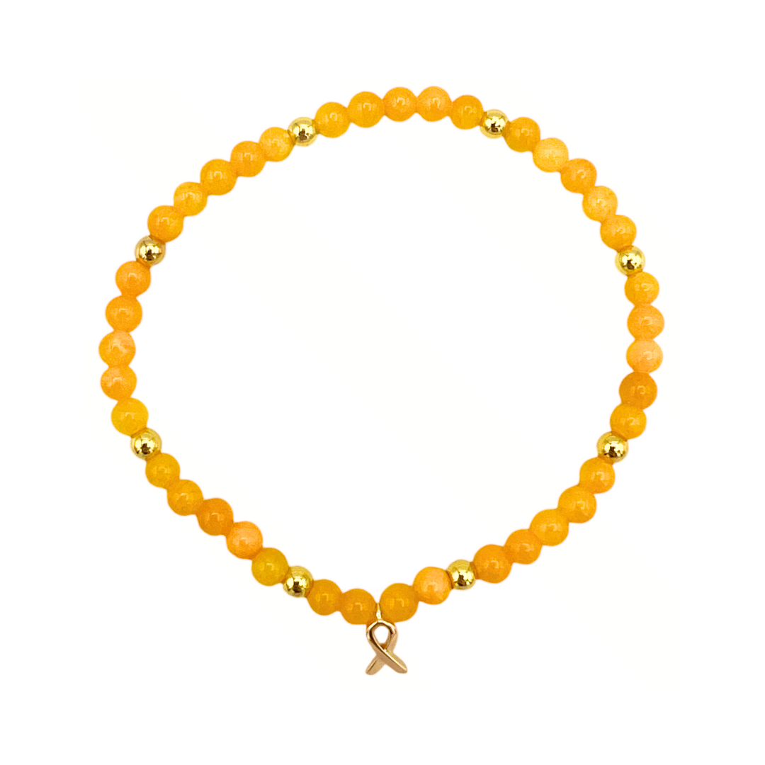 Show your support for Childhood Cancer, not just in September, but every month! This beautiful dainty bracelet is designed with yellow jade. You can wear this beautiful bracelet as an everyday addition or for special occasions.