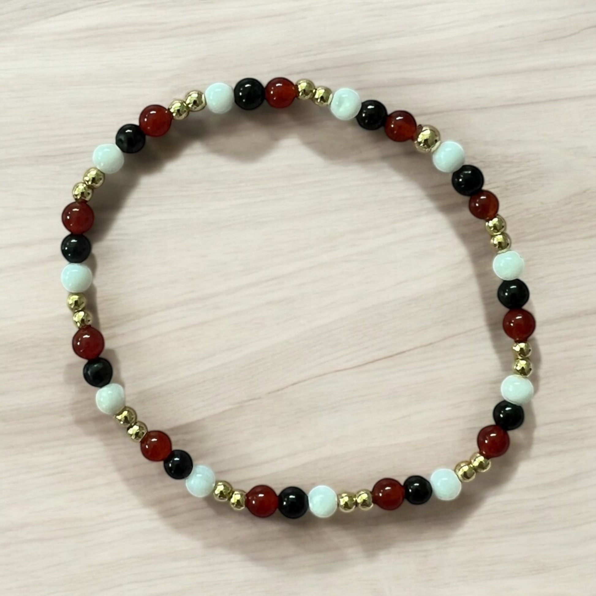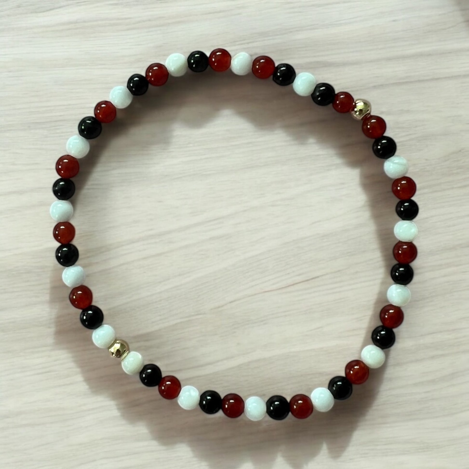 You can choose the bracelet with just two Gold Plated Beads or smaller more dainty Gold Filled Beads.