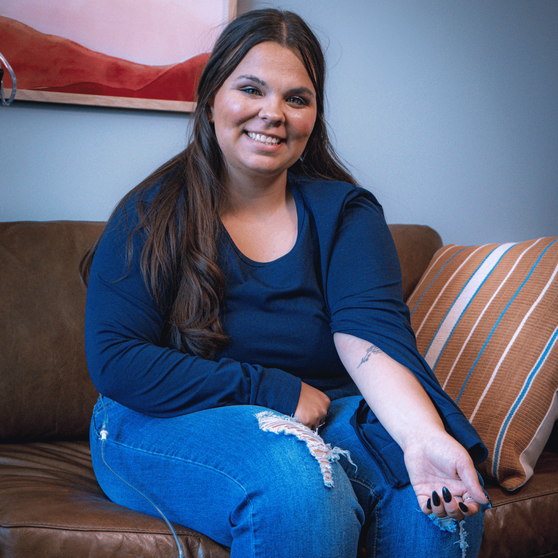 The Navy Dual Arm Access Long Sleeve T-Shirt is designed for those who require frequent blood draws, PICC lines, IV's, or dialysis access. The scoop neck and long sleeves, with two zipper pulls and full access, provide easy and convenient access, making medical procedures more comfortable and less stressful.