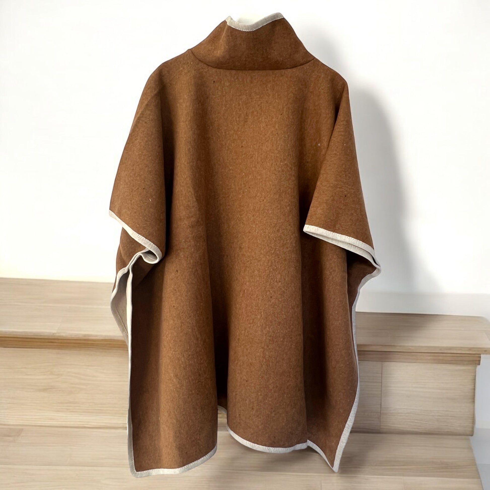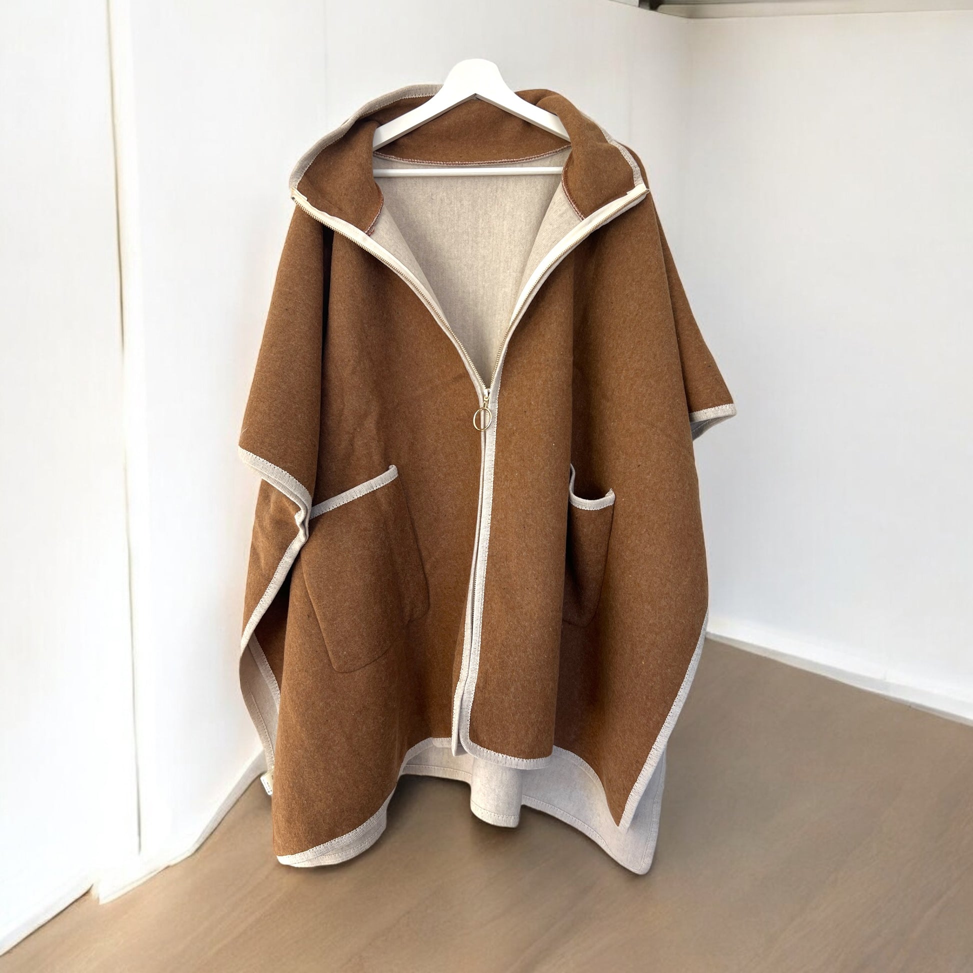 Are you looking for a poncho that is perfect for layering? The temps are dropping and the festivities are beginning. This poncho has a simple access via a zipper with a large circle zipper pull.
